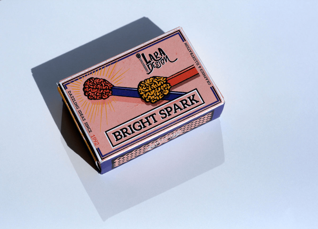 this is a self promotional design for a match box. it shows pieces of matches on the box and the top the matches is in a form brains. the colors used in this design is perfect for the theme it represents.